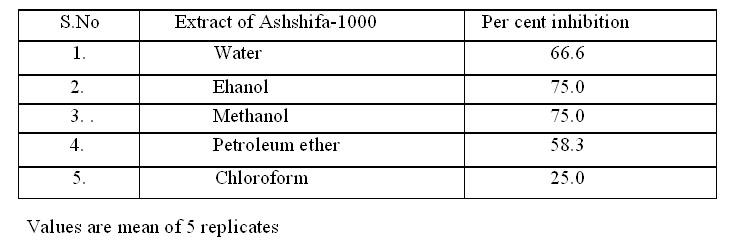 Table-V Extent of inhibition of in vitro lipid peroxidation by Ashshifa-1000 |